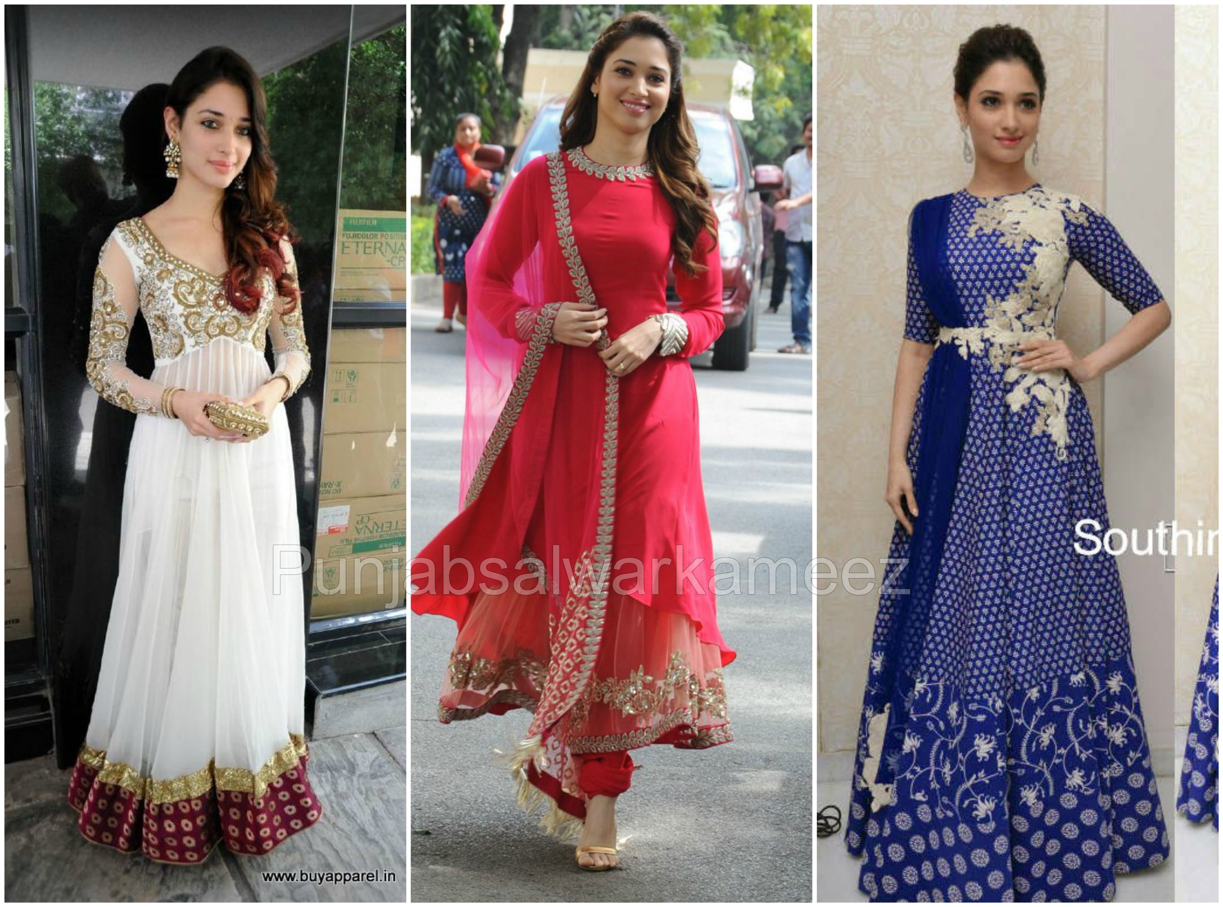 Tamanna Bhatia also well known for her roles in South Indian Movies has come to a trend setter profile when it comes to styling salwar kameez, from simple salwar suits to the gorgeous designer salwar suits like from the top left Manish Malhotra, Sabyasachi and Ridhi Mehra dresses she is seen wearing gives her personality a fashionable tag.